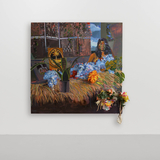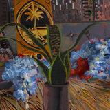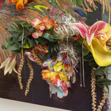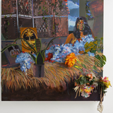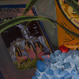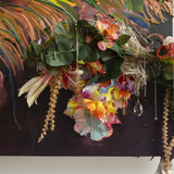 Oil on canvas, found object, jewelery from subject-collaborator, resin, sound