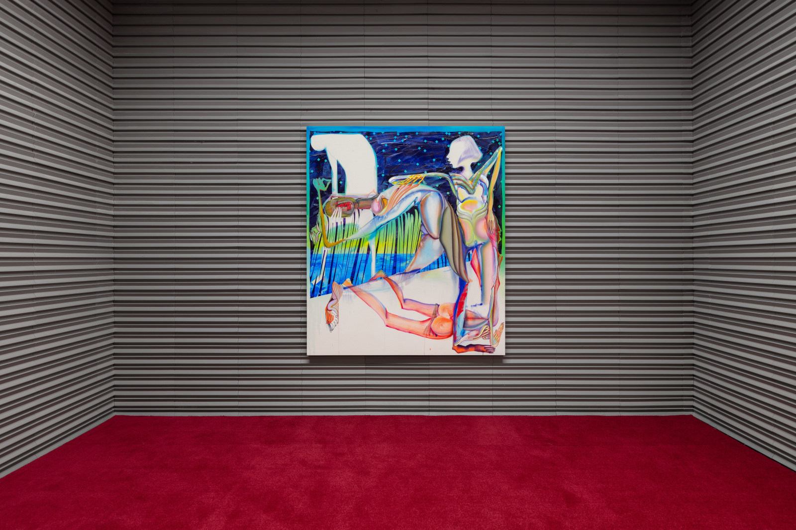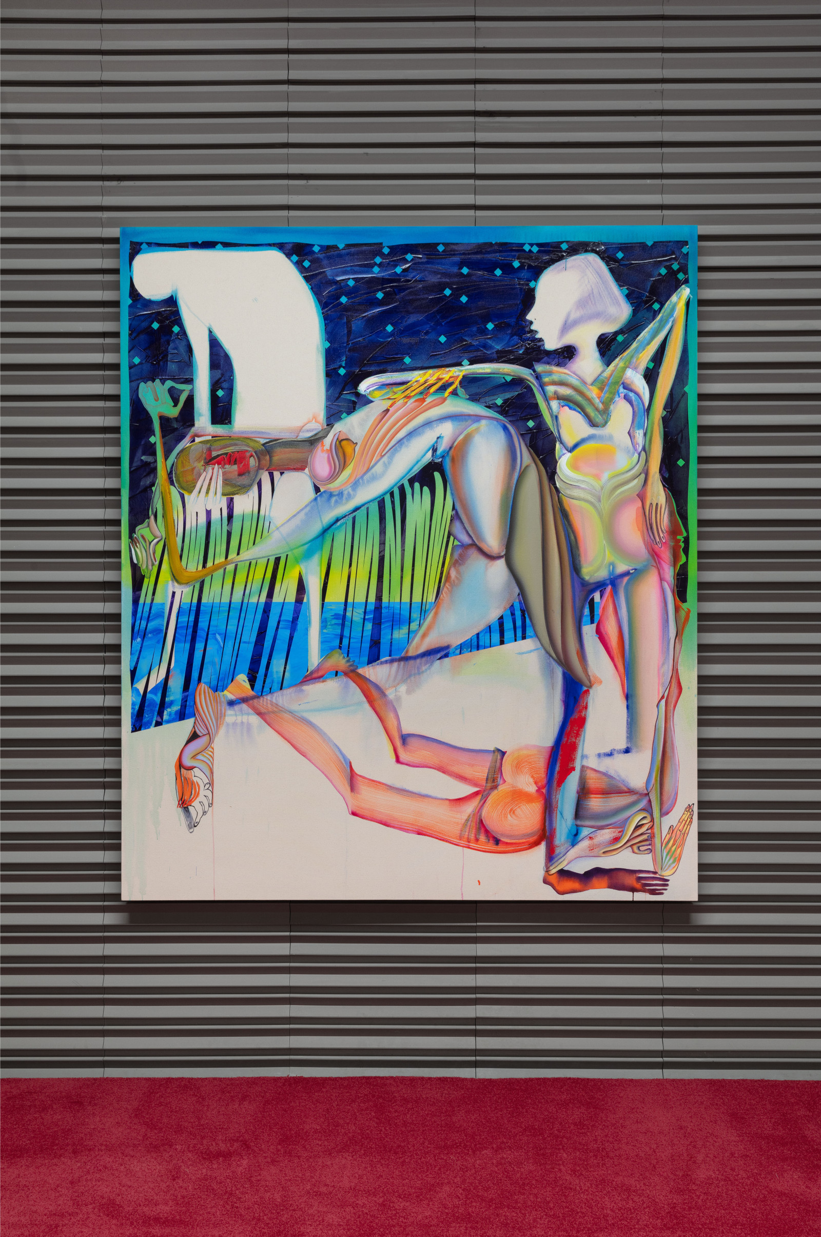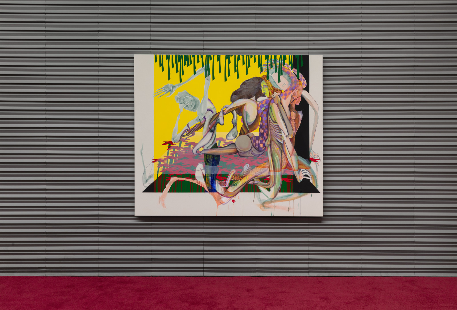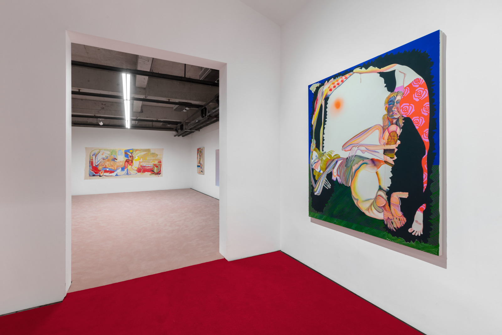 Quarles has noted that her paintings are a visual representation of experiencing the world within a body. From the unstretched acrylic work on canvas that reflects the thinking and creative process of the artist's early years, to a series of recent works that are largely inspired by social events, Christina Quarles: Dance by tha Light of tha Moon aims to recount two aspects of the body. Namely, as a medium of perceiving and connecting the self and the outside world. Concurrently, the showcased works also convey the artist's keen insights into themes such as emotion, everyday life, and cultural hierarchy. These paintings, sometimes melancholy and sometimes characterized by striking contrasts, frame the stories performed by the body in the exhibition space. As such, they lead us to reflect upon the complex real-life relationships between the private and the public, as well as the personal and the social.