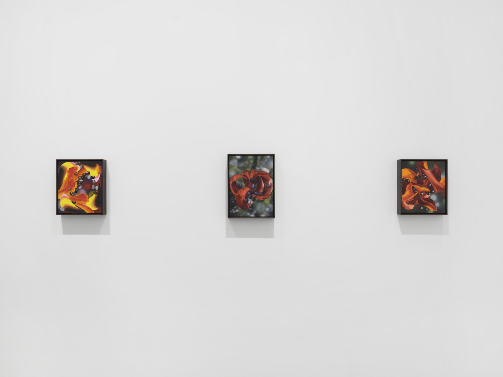Jordan Casteel’s recent paintings – which can be viewed as self-portraits – are based on the seasonal blooms in her garden in the Catskill region in New York, where she has recently relocated from New York City. Three salmon pink blooms in Lupine (2024) emerge from the foreground against an abstract field of green that separates them from the honeysuckle in the background. ‘I see my own labour in it’, Casteel affirms. ‘It’s not about observing the things that are most true for you in this moment. It’s about observing the things that were most true for me.’(7)