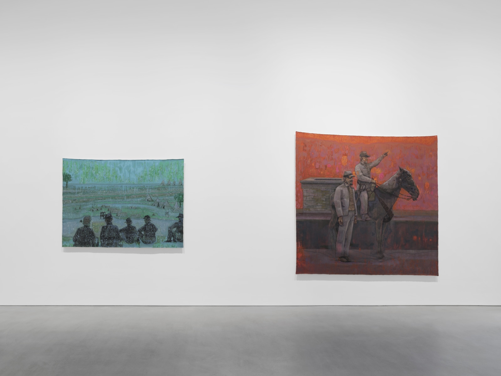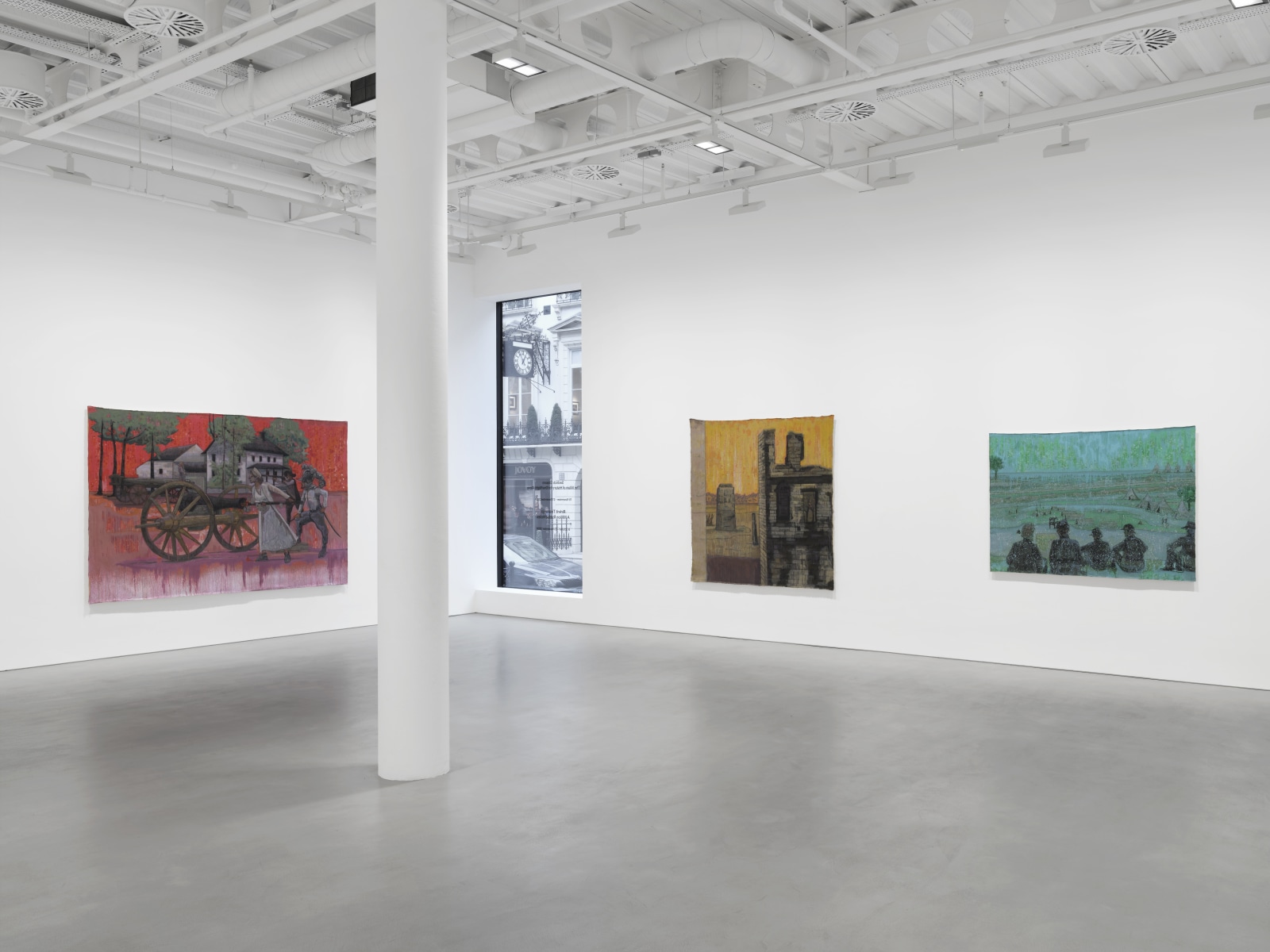 Chisom’s process involves creating multiple washes and layers of paint, repeatedly painting over earlier iterations of the painting, which he views as a nod to an impulse to look back and repeat or erase history. Drawing upon a mix of references – including: eighteenth-century literature and visual culture, the work of Francisco Goya, photography from the American Revolutionary War, gothic imagery and Victorian illustration – in Chisom’s scenes linear time collapses, and past, present and future converge into a new vision. For Chisom, ideology is not something to be decoded or understood through a series of events – it functions like a continuity of incoherent moments that weld together in the present, like a seamless, infinite feed that warps and shapes our reality.