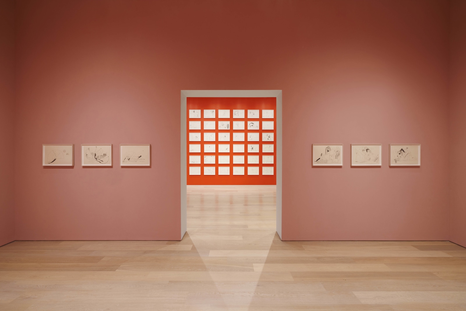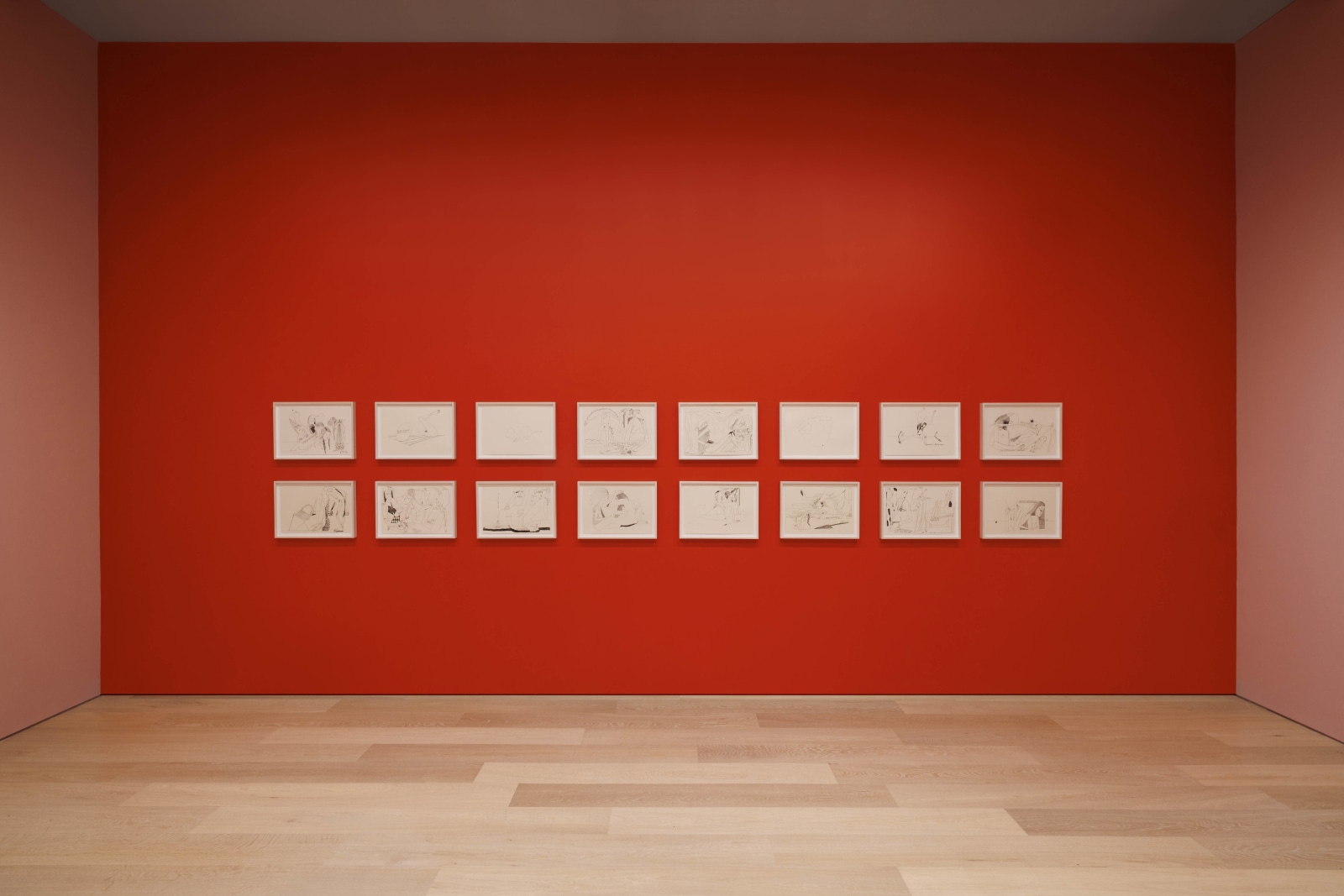 Exploring the foundational importance of drawing to Christina Quarles’s painting practice, Far from Near focuses on works on paper in ink and acrylic that inform her distinctive approach to representing identity and the human body. Quarles’s early ‘100 Series’ drawings marked a pivotal juncture in her career, helping to define her creative vision and voice as an artist. A formative body in their own right, these drawings and subsequent works on paper interrogate the formal elements of the body and the ‘illusory boundaries that demarcate the self,’ while also incorporating text to reference evocative lyrics, phrases, and overheard conversations. Featuring expressive, almost effortless gestural lines, these rarely seen works showcase Quarles’s deft ability to manipulate figures and space, further solidifying her place as one of the most important artists of our time.