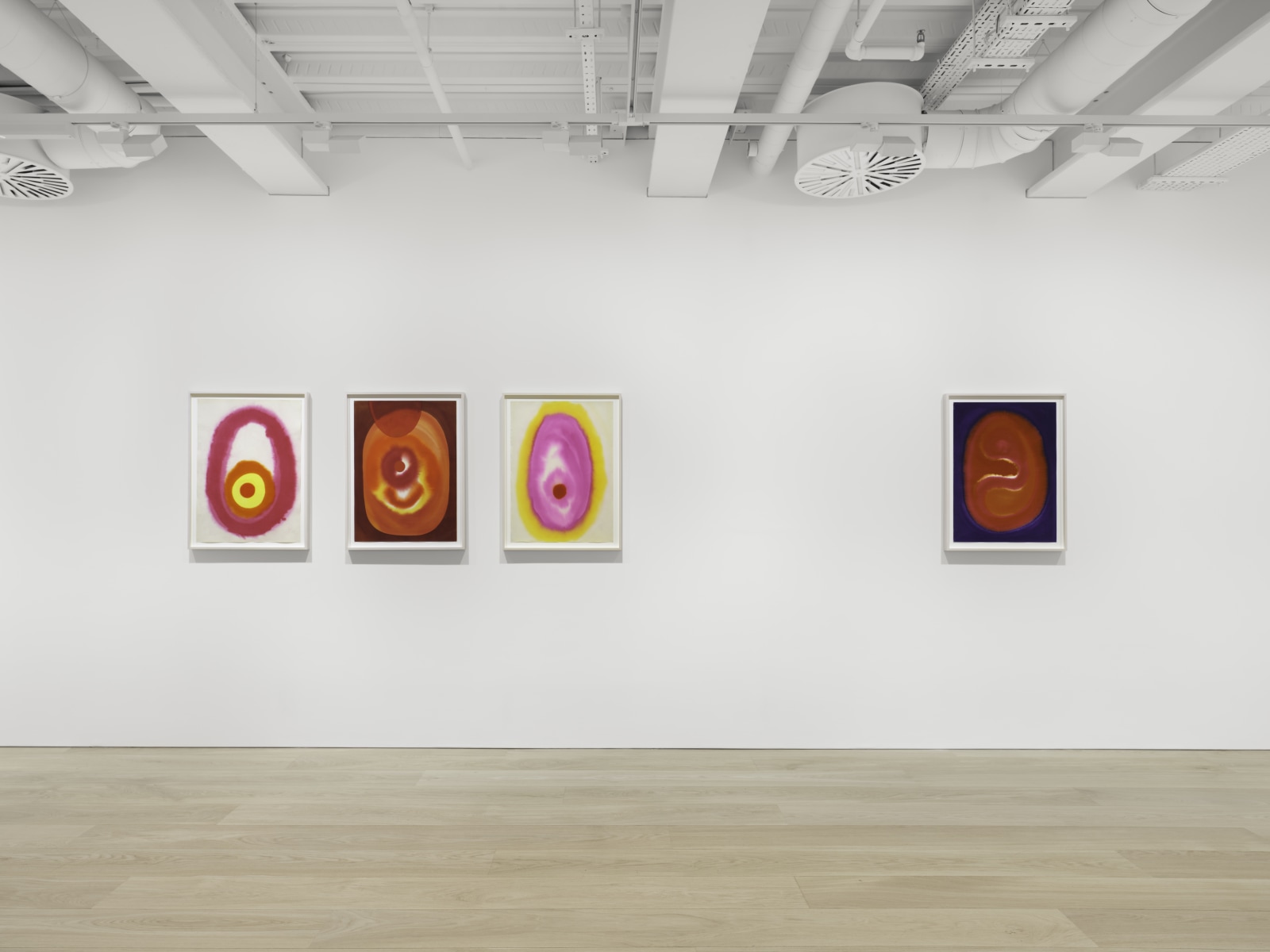 For Mohanti painting is a form of meditation, and the efforts to control the paint’s flow can be likened to a person’s attempts to control their life. The universal symbol of the circle, a recurring form in his work, returns the artist to his childhood, when he was taught to practise the Hindu holy trinity of Brahma, Vishnu and Maheshwara as three circles. Although deeply rooted within the Indian landscape and Tantric culture, Mohanti translates these sources through the language of abstraction to produce paintings as transcendent as they are personal.