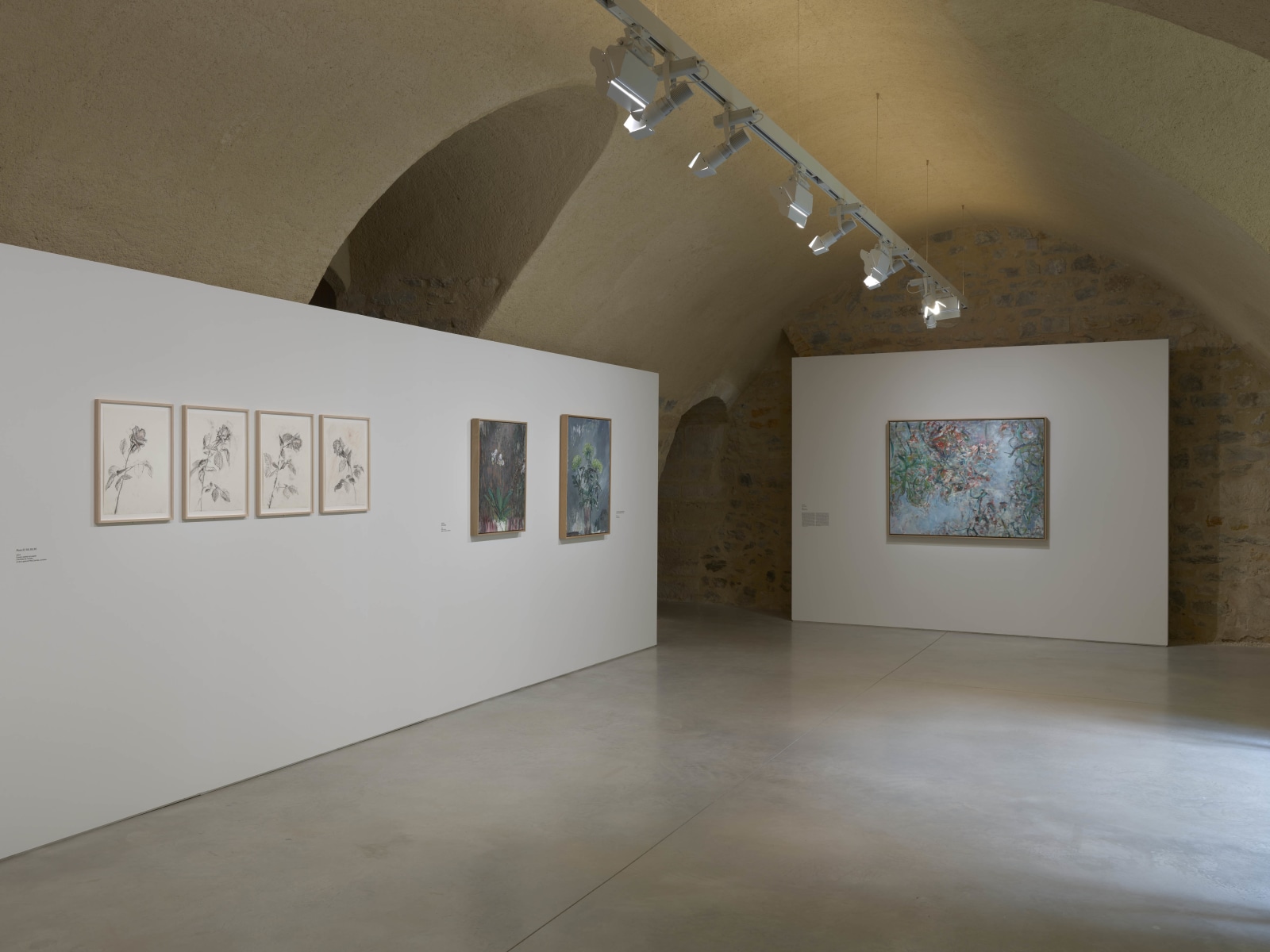 Conceived as an archipelago, the exhibition is anchored by the painting Heaven (2015). The canvas adopts the viewpoint of a person lying in the grass, looking up at the sky. Through a delicate web of foliage, visual bearings begin to waver: forms dissolve and the surface comes alive. Hovering between figuration and abstraction, Heaven embodies a shifting pictorial space – one that oscillates between sensation and memory, the intimate and the infinite.