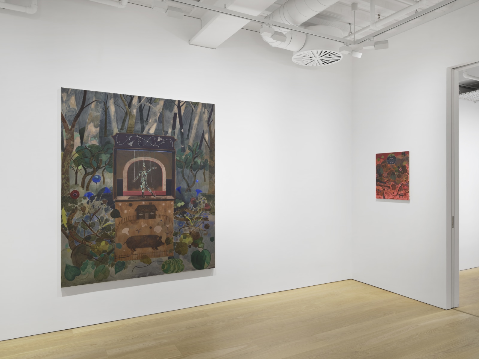 Drawing its title from the Yorkshire saying meaning ‘always do it for yourself’, Allus Do It Fer Thissen echoes a quiet call to resilience, an undercurrent that moves through each of the works in the exhibition. Entangled in foliage or submerged in rising undergrowth, the figures in these paintings traverse dense landscapes as beings negotiating survival, connection and uncertainty. In Owens’s world, the natural and the human are not opposed, but entangled, each shaping the other in moments of subtle tension, care and survival.
