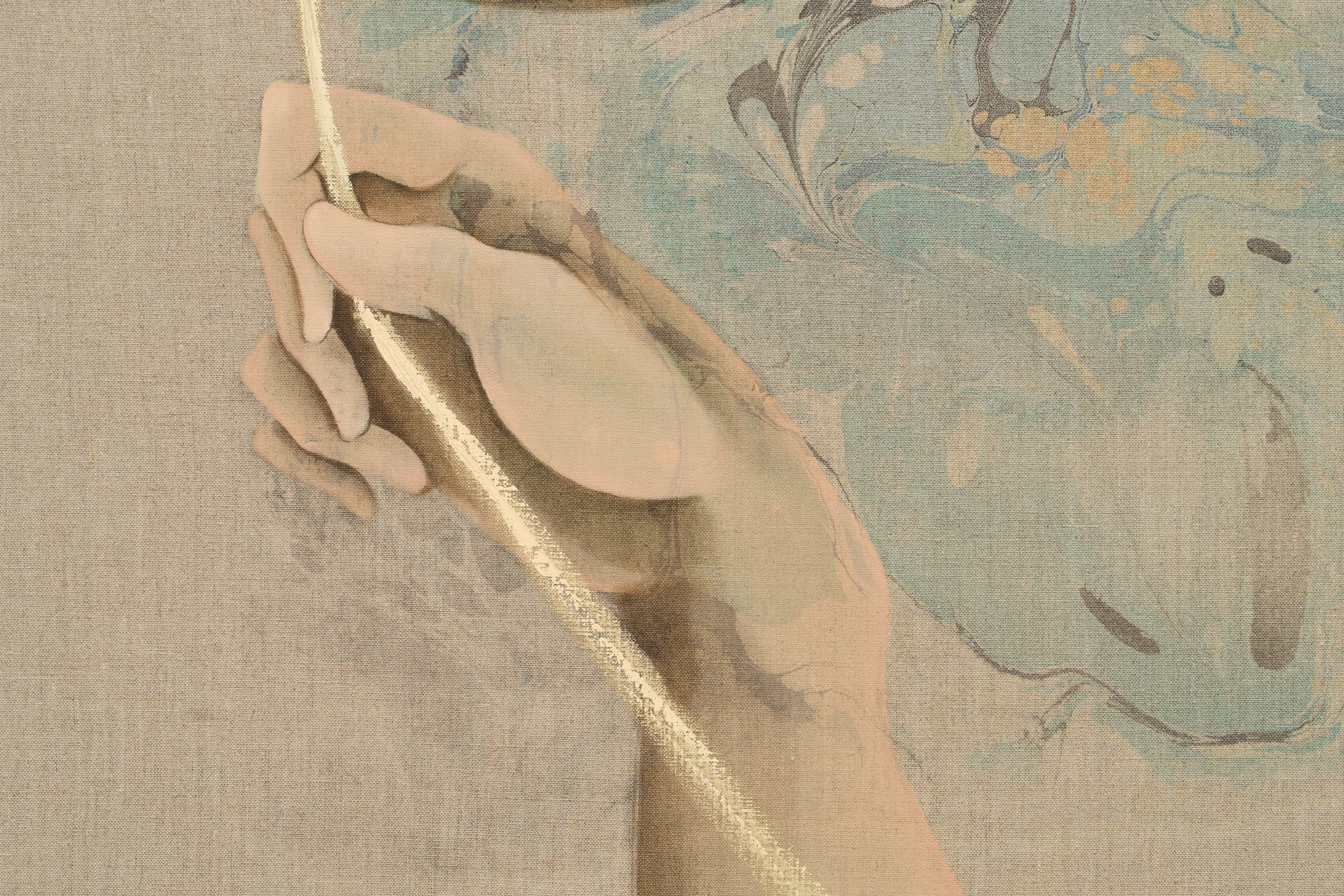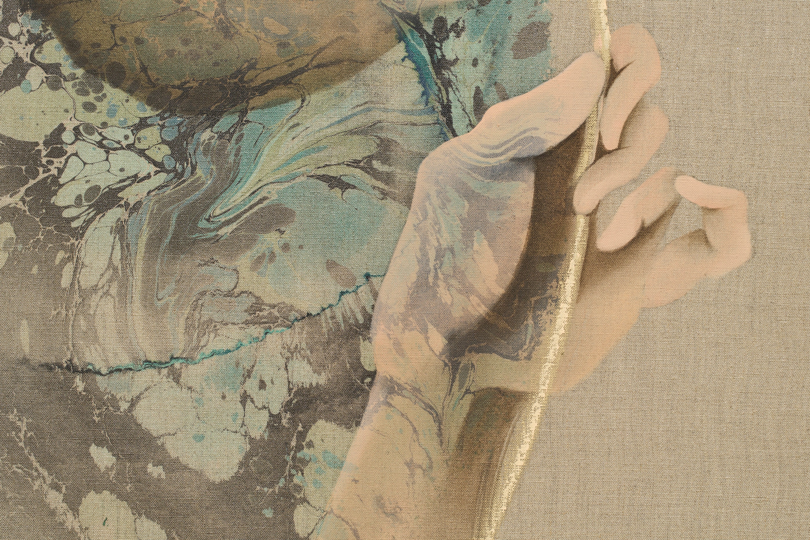 Reflecting on her early experiences as an Iraqi refugee in Sweden, Hayv Kahraman’s new body of work examines the ways in which colonial practices in the field of botany continue to perpetuate hierarchical structures and gendered metaphors within the natural world and, by extension, sociopolitical contexts. The artist experiments with marbling her own handmade linen surfaces using the ebru technique, which translates as ‘the art of clouds’. Inhabiting their intentionally irregular landscapes, Kahraman’s defiantly anonymous female figures traverse and challenge grid-like systems designed to impose order and identification. In Kahraman’s hands, the technique of marbling becomes an act of defiance, a means of building alternative architectures of refuge and resilience.