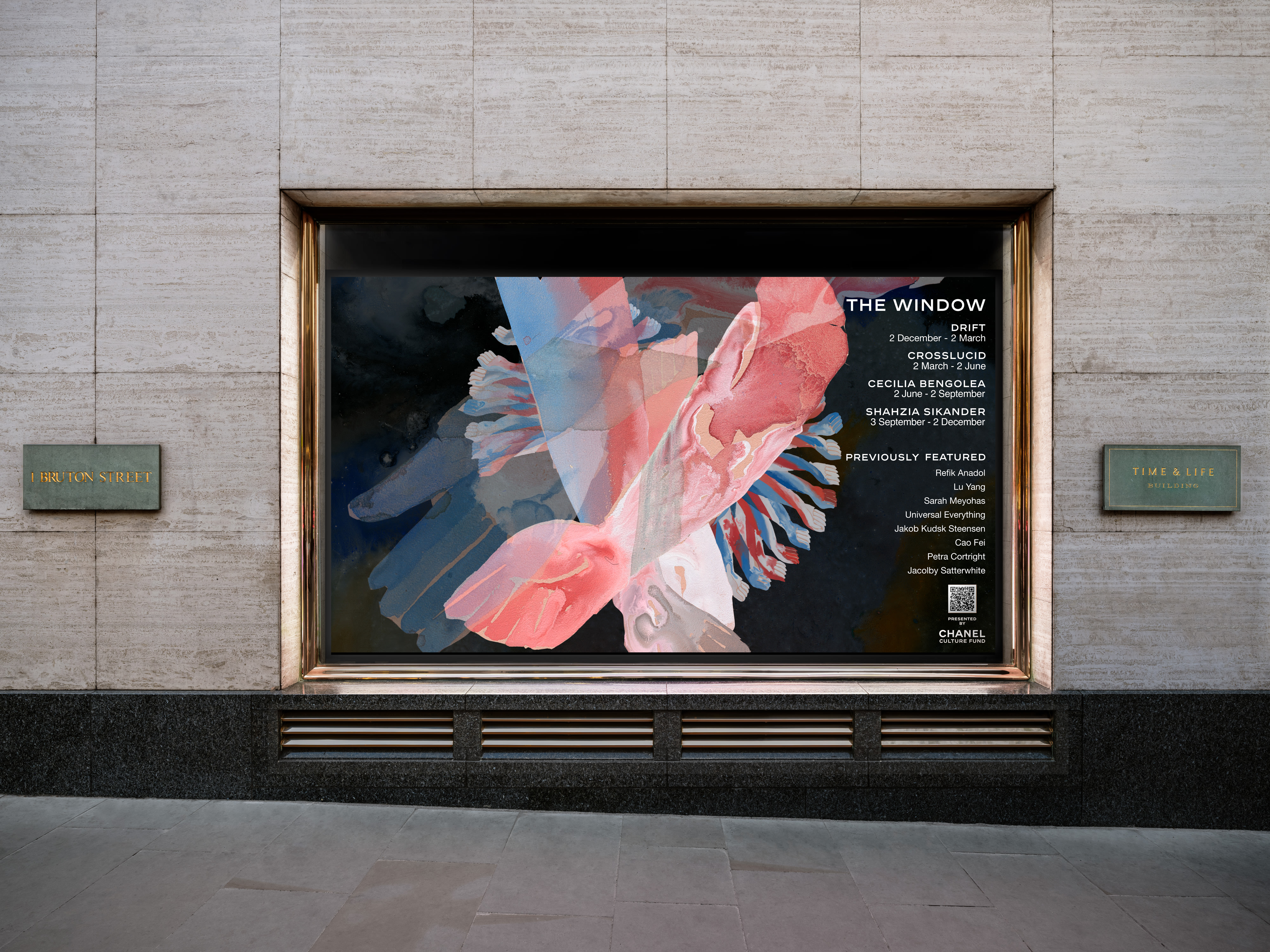 The animation critically considers the legacy of British colonialism in Asia, with Sikander using her signature approach of infusing Indo-Persian miniature paintings with a contemporary perspective. The work centers around a European gentleman in a red waistcoat, a symbol of British imperial power. Indian court architecture, Chinese cut-paper silhouettes and a watercolor map of South Asia all dissolve and reconfigure around him. Sikander based this figure on miniature paintings from the late eighteenth century depicting British East India Company officials.